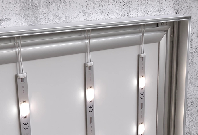 Plus jsou tu ještě technické výhody. Textil v kvalitním rámu vypadá prémiově. Materiál je pevně vypnutý, barvy díky moderním tiskům sytá a zářivá, celkový dojem profesionální. A když použijete světelné rámy (lightboxy), váš vizuál doslova září a upoutá pozornost i z velké vzdálenosti.